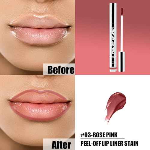 Peel Off Lip Liner Stain, Long Lasting Matte Lip Tattoo Makeup, Smudge-Proof, Highly Pigmented Color, Transfer-Proof, Waterproof, Suitable for All Skin Types, Rose Pink