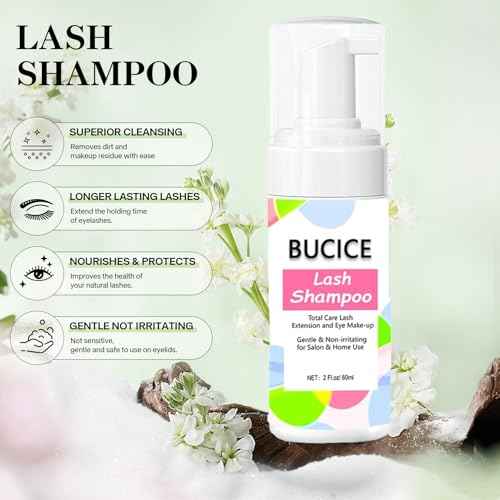 Eyelash Extension Cleanser, BREYLEE Upgraded Eyelash Extension Shampoo 60ML+Mascara Wand+Brush Eyelash Foam Cleanser For Extensions and Natural Lashes