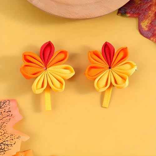 Fall Hair Clips for Girls Women, Fall Thanksgiving Nail Accessories, 2pcs Cute Maple Leaf Hair Clips, Mixed Color Polyester Hair Accessories for Girls and Women, Thanksgiving Hair Barrettes