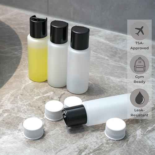 4 Pack 2oz Travel Bottles ? TSA Approved HDPE Translucent Squeeze Bottles with Black Disc Tops & 4 Extra Screw Caps, Leak Proof, Durable, BPA Free, FDA Compliant
