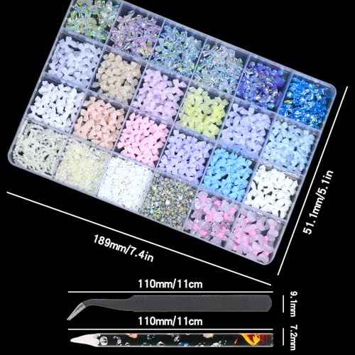 HNUIX Bow Nail Charms for Nails - Colorful Bow-Knot, Manicure DIY Crafts, Flat Back Pearls 1600 Pieces Nail Decoration Kit