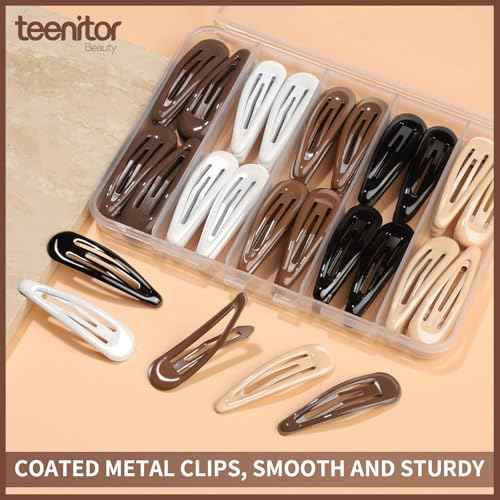 Teenitor 50Pcs Snap Hair Clips,2 Inch Hair Barrettes Hair Clips For Women, Metal Mixed Color, Hair Barrettes For Women Hair Snap Clips 5 Colors