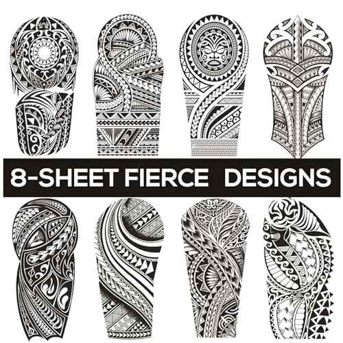 8 Sheets Waterproof Temporary Totem Tattoos - Long Lasting Black Totem Tattoo Temporary Realistic - Fake Tattoos for Adults and Kids - Western, Gothic & Watercolor Styles