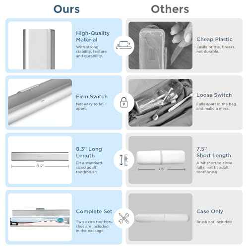 Aluminum Toothbrush Travel Case with 2 Soft Bristle Toothbrushes, Portable Complete Toothbrush Travel Kit, Toothbrush Holder for Bathroom, Camping, Business Trip