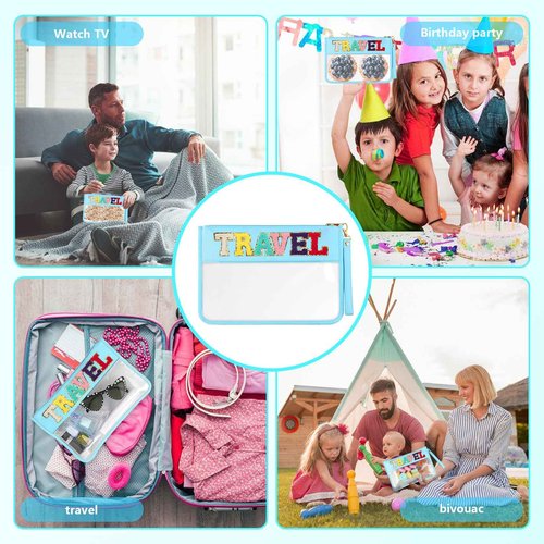 HANAMO Chenille Letter Clear Snack Bag for Tote Organizer, Chenille Letter Stuff Pouch Nylon Cosmetic Bag Zipper Pouches Clear Makeup Bags Travel Bags for Women Girls