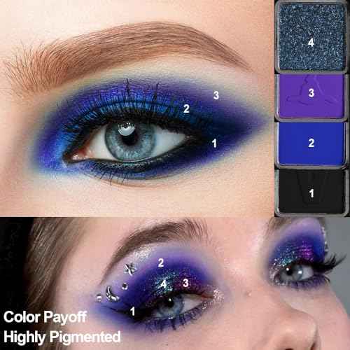Afflano Goth Eyeshadow Palette Purple Blue, Multichrome Chrome Blue Purple Matte Black White Grey Dark Eye Shade, Gothic Halloween Makeup Eye Shadow Pallet for Joker Clown Cosplay SFX Makeup Costume