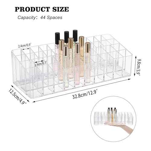 ELLDOO Rollerball Perfume Organizer, 44 Spaces Clear Acrylic Perfume Storage Holder Beauty Scent Holder, Essential Oil Storage Holder Organizer, Makeup Lipgloss Lipstick Display Case