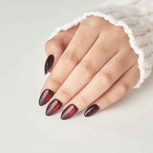 Handmade Cat Eye Gel Press On Nails ? Short Almond Dark Black Red Set, 26pcs Reusable Lamp-Curable Nail Kit Salon-Quality Fake Glue On Nail Tips for Christmas Valentine Wedding Everyday Glam