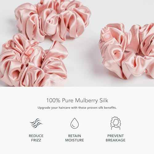 Fishers Finery Large Silk Scrunchies, 25 Momme Pure Mulberry Silk - Hair Tie Set, Anti-Frizz and Damage (Pink 3 PK)