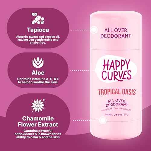 HAPPY CURVES All Over Whole Body Deodorant for Women - Aluminum-Free - Invisibile All Day Layer of Full Body Protection for Odor Control Only, Sensitive Skin, & Private Parts (Tropical Oasis)
