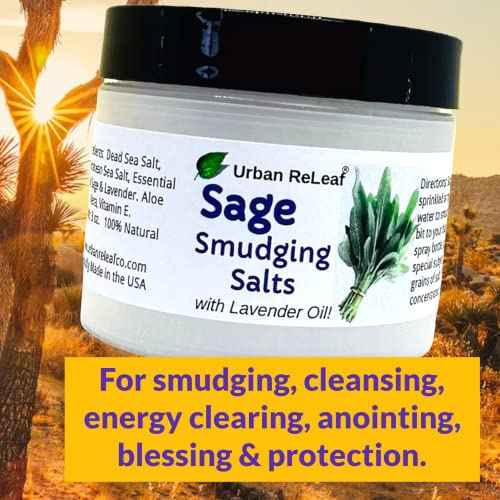 Urban ReLeaf Sage Smudging Salts with Lavender Oil ! Safe & Smokeless Smudge Cleanse Protect Bless Anointing. Fresh from USA! 100% Natural, Vegan.