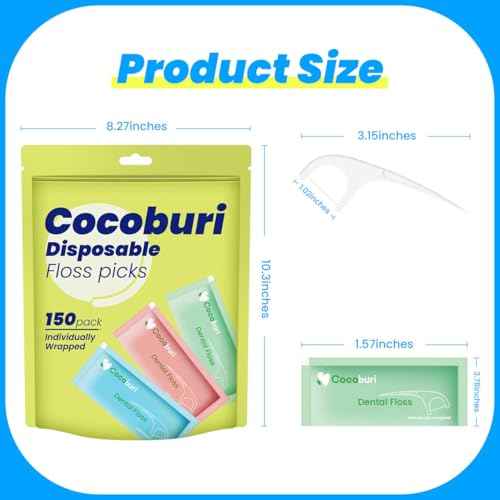 Individually Wrapped Dental Floss Picks-Disposable Floss Picks for Adules-Floss Single Bag-Unflavored Floss Picks-BPA Free-Bulk Floss Sticks-150 Counts