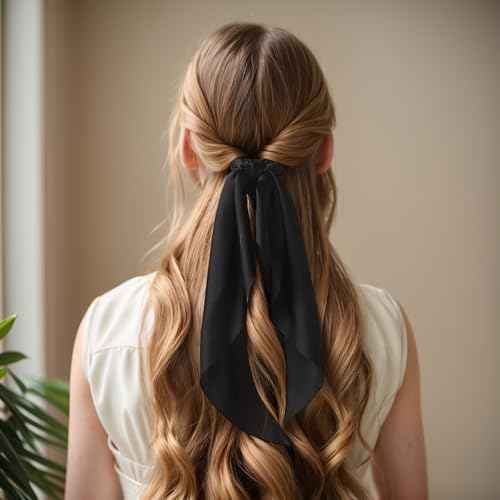Black Hair Ribbon for Women - 10 Pack Hair Scarf Scrunchies, Bow Hair Ties Elastic Ponytail Holders, Soft Hair Bow for Women, Gentle Hair Accessories for All Hair Types