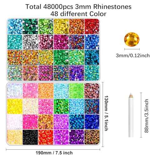 48000Pcs Gems for Crafting,Resin Jelly Rhinestones for Crafting, 48 Color 3mm Flatback Gems for Diamond Art DIY Crafts Clothing Shoes Nail Art Decoration