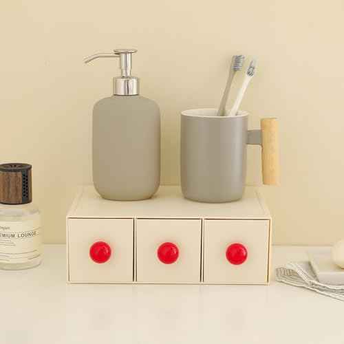 Stackable drawer with 3 Drawers, Bathroom Storage Organization, Makeup Organizer for Nail Polishes, Liquid Foundation, Lipsticks, Powder Puff, Beige