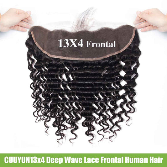 13x4 Lace Frontal Closure Ear to Ear Full Lace Frontal Closure Brazilian Deep Wave Human Hair Frontal Free Part Pre Plucked With Baby Hair 150 Density Natural Black 16 Inch