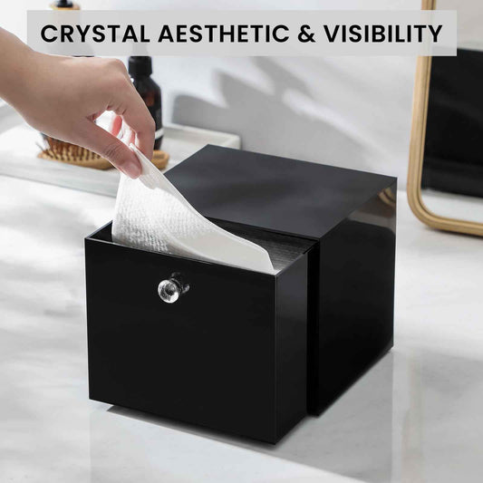 LANDNEOO Disposable Face Towel Container Box Compatible with Clean Skin Club Clean Towel XL, AcrylicTowel Storage Bin with Drawer, Makeup Organizer stackable holder, Ideal for Vanity, Bathroom, Black