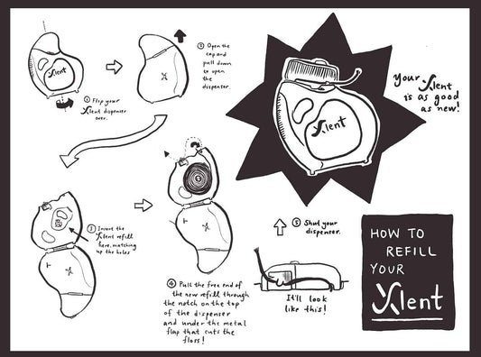 Xlent Expandable Dental Floss Treated with Activated Charcoal, Xylitol, Natural Plant Based Wax, Refreshing Mint Flavor - Pack of 5 (Refills Only)