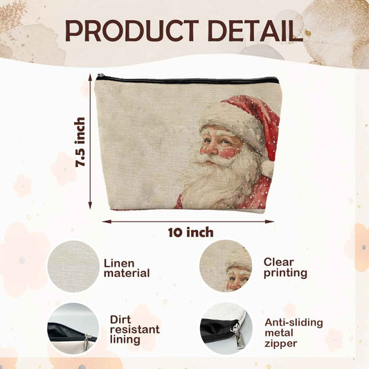 ignytiger Vintage Santa Claus Makeup Bags, Winter Christmas Festive Santa Gifts Cosmetic Bags for Women, Rustic Christmas Decor Holiday Santa Portrait Canvas Makeup Bag Gifts Zipper Pouches for Purse