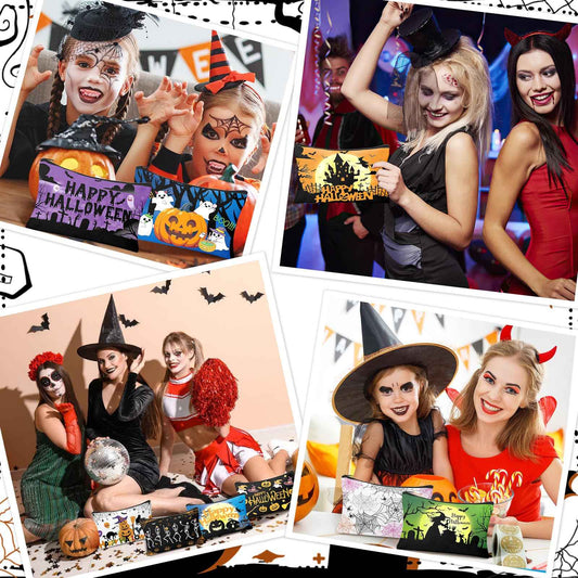 HSDSH 30Pcs Halloween Makeup Bag Cute Halloween Cosmetic Bag with Zipper Pumpkin Travel Toiletry Pouch Bag Organizer Halloween Party Gifts Supplies for Women