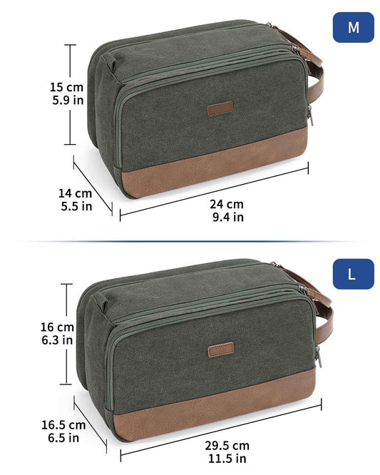 WANDF Toiletry Bag for Men Travel Toiletry Organizer Canvas and Leather Dopp Kit Water-Resistant Shaving Bag for Travel Accessories (Green, Medium)