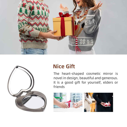 EYIDADAE Mini Vintage Heart Elegant Metall Makeup Mirror, Portable 1X/2X Magnifier (Silver)