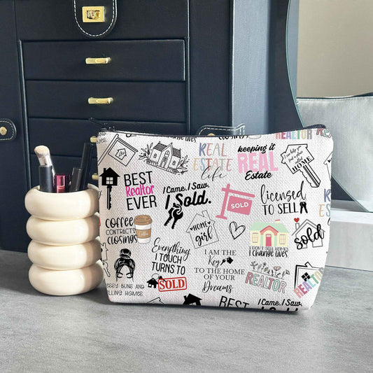 WCGXKO Novelty Realtor Gift Realtor Sayings Real Estate Life Quotes Canvas Makeup Bag (realtor)