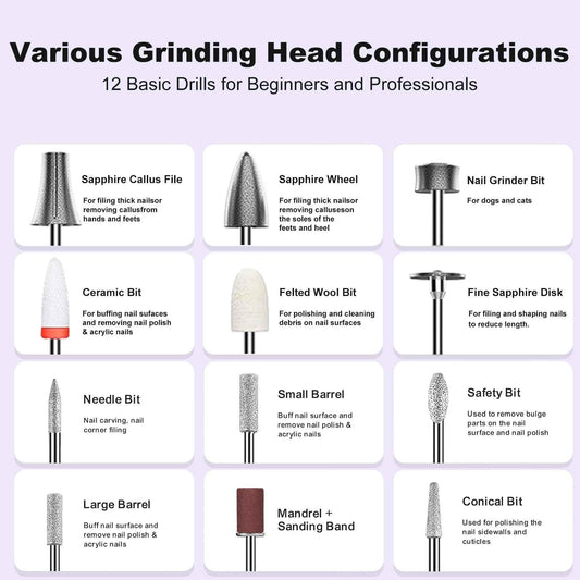 Professional Electric Nail Drill Kit,30000RPM Alloy Electric Nail File for Acrylic Nails Gel Polishing Callus Remover,LED Display,12 in 1 Cordless Quiet Manicure Pedicure Kit for DIY,Home Salon Use