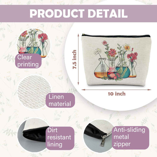 RYYCDOI Science Teacher Gifts Makeup Bag - Floral Beakers Cosmetic Pouch
