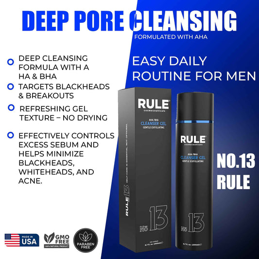 RULE COSMECEUTICALS - No.13 AHA BHA Cleanser, Exfoliating Face Wash for Smooth Skin & Pores, Gentle Facial Exfoliator for Redness & Blackheads, Hydrating pH-Balanced Gel, Oily & Sensitive Skin, 200 mL