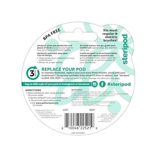 Steripod Clip-On Toothbrush Protector with Peppermint Essential Oil, Keeps Toothbrush Fresh and Clean, Fits Most Manual and Electric Toothbrushes, 1 Count