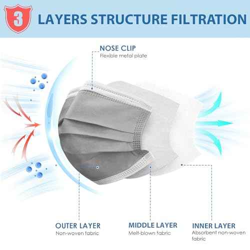 LEMENT Disposable Face Masks 125 Pcs, 3 Ply Face Mask Elastic Earloops for Indoor Outdoor, Disposable Masks for Adults, 5 Color