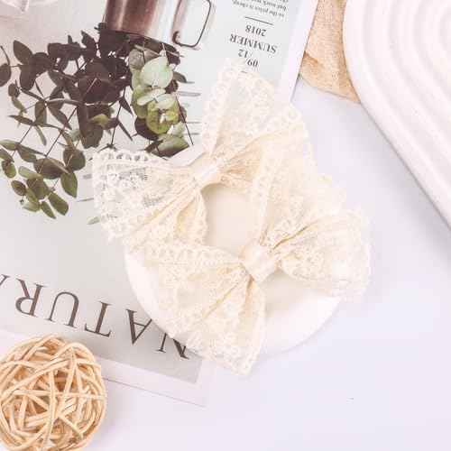 3-Inch Lace Hair Bow Clips for Girls-2PCS Vintage Multicolor Bowknot Hair Accessories, Perfect for Weddings, Birthdays & Special Events-Ivory