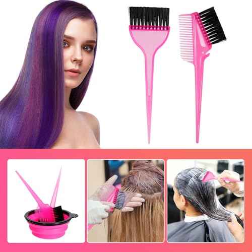Hair Dye Color Brush and Bowl Set, Color Bowl Brushes Tool Mixing Bowl Kit Tint Comb for Hair Tint Dying Coloring Applicator (Pink&Black)