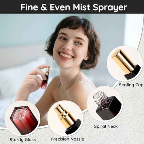 Segbeauty 0.34oz Empty Travel Perfume Atomizer Refillable, 5 Pack Mini Glass Perfume Spray Bottles, 10ml Portable Travel Cologne Spray Bottles, Small Cologne Atomizers with Clear Transfer Tool Set