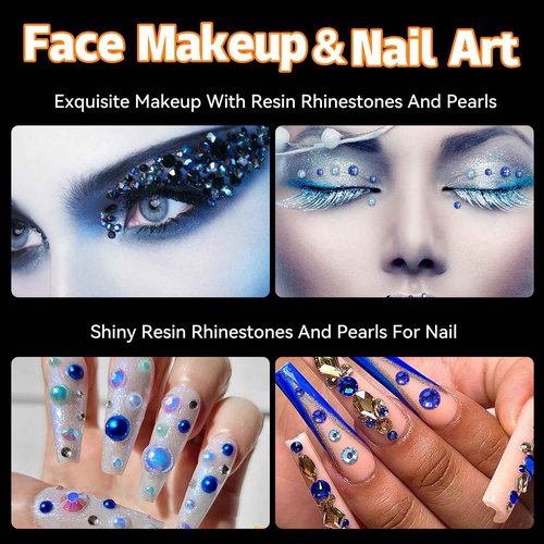 50g Blue Color Flatback Rhinestones Pearls for Bedazzling, 3-8mm Flatback Rhinestone Gems, 2-10mm Pearls Beads, Moon Star Heart Bowknots Pearl Nail Charms for Crafts DIY Clothes Tumblers