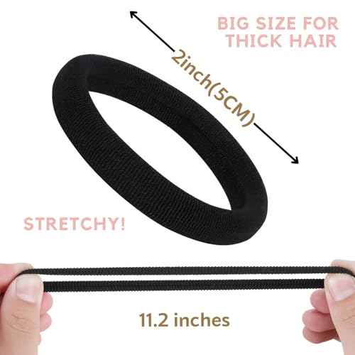 60 Pcs 2 Inch Black No Damage Hair Ties for Women Thick Hair, Large Soft Seamless Nylon Fabric Elastic Hair Ties Ponytail Hair Holders Hair Elastics Hair Band for Women