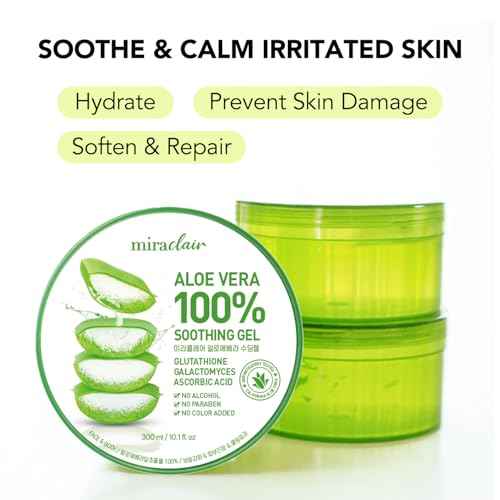 Aloe Vera Gel for Face, Skin, Hair & Sunburn Relief, Made with 100% Pure Aloe Gel for All Skin Types. Made in Korea. 300ml (10.1fl.oz) (1)