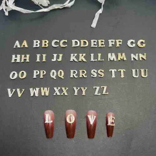 52 Pcs 3D Silver and Gold Nail Charms Letters Initial Charms for Nails Nail Letter Charms Alphabet Rhinestone Letter Nail Charms for Nail Art Design Decoration DIY Craft