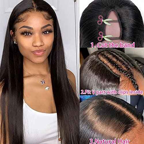 CHEETAHBEAUTY V Part Wigs Human Hair 16 Inch No Leave Out Lace Front Wigs Upgrade U Part Wigs Brazilian Virgin Straight Human Hair Wigs for Women 180% Density Natural Color