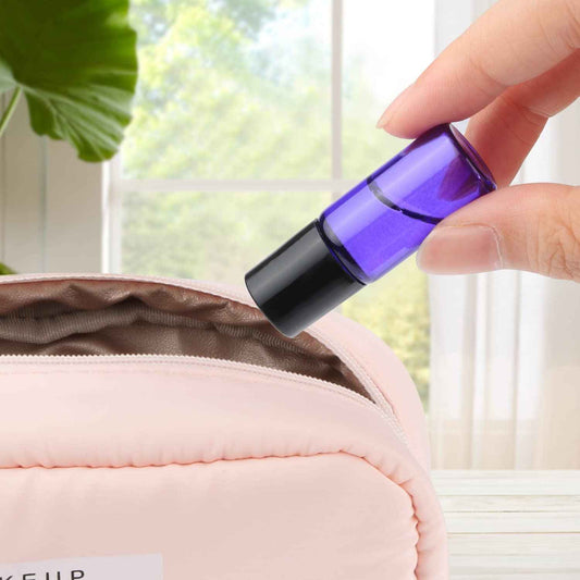 Furnido Pack of 50,3ml Glass Roll on Bottle Mixed Color Sample Test Roller Essential Oil Bottles glass vials With Stainless Steel Roller Balls,Black Plastic Cap For Travel Aromatherapy,Perfume Oils