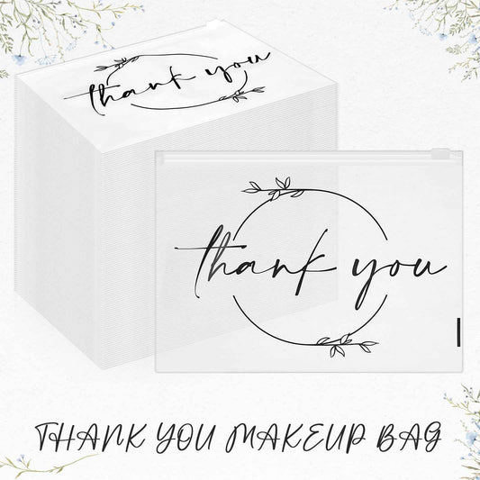 Ireer 100 Pcs Thank You Gift Makeup Bags EVA Clear Cosmetic Bag with Zipper Mini Makeup Thank You Toiletry Cosmetics Bulk Gifts for Women Birthday Daughter Sister(Clear)