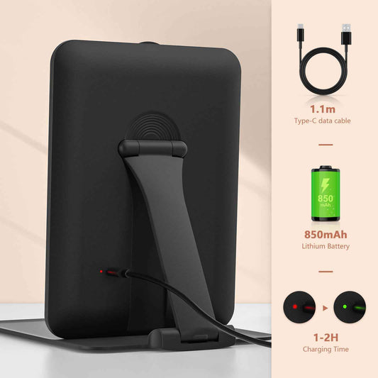 WOBSION Travel Makeup Mirror, 7.4 * 5.1in Rechargeable Portable Folding Makeup Mirror with Lights, 3 Colors Light Up Mirror with 48 LEDs,Dimmable,Multiple Angles and High Adjustable,Gift,Black