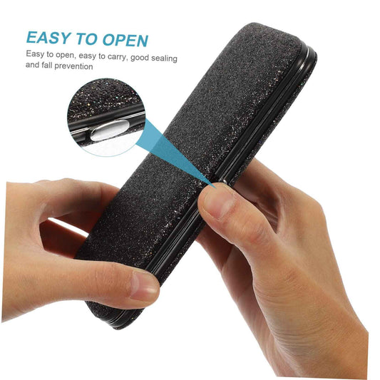 FRCOLOR Lash Tweezers Organizer Case Portable Eyelash Extension Tweezers Bag 7 Positions Rounded Corners Individual Storage Case Box for Slender Small Tools(Black Glitter)