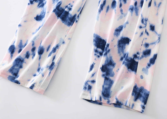 PNAEONG Women Pajama Set Sleepwear Tops with Capri Pants Casual and Fun Prints Pajama Sets Pink Blue 2XL