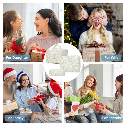 egnek 3 Piece Quilted Makeup Bag with Cute Ditsy Floral for Travel, Toiletry Pouch, and Cute Cosmetic Bags, Compact Design and Stylish