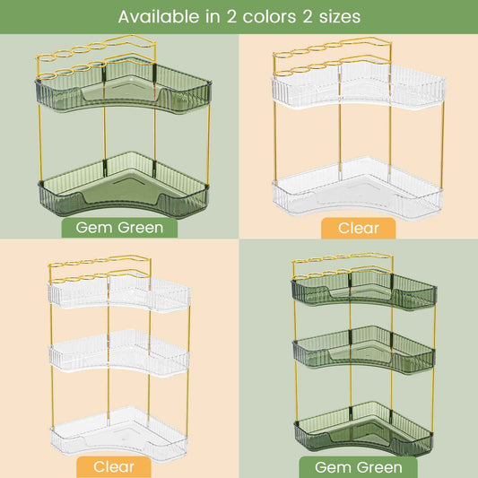 NATURE'S SOURCE Makeup Organizer for Vanity, 3-Tier Corner Bathroom Organizer Countertop with Makeup Brush Holder, Corner Counter Storage for Bathroom Dresser- Green