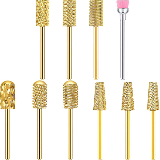 Honoson 10 Pcs Nail Drill Bits Set, 3/32 Inch Cuticle Tungsten Carbide Bits for Nail Tech, File Remove Acrylic Gel Polish, Manicure Pedicure Tools for Salon Home Supplies(Gold)