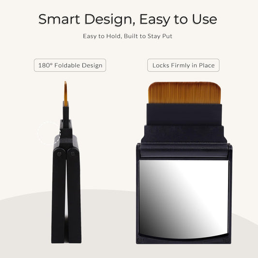 Foundation Brush with Vegan No-Shed Bristles, Wide Flat Head for Cream Liquid or Sunscreen, Dual Replaceable Heads, Mirror and Magnetic Case, Ideal for Daily Use at Home or On the Go