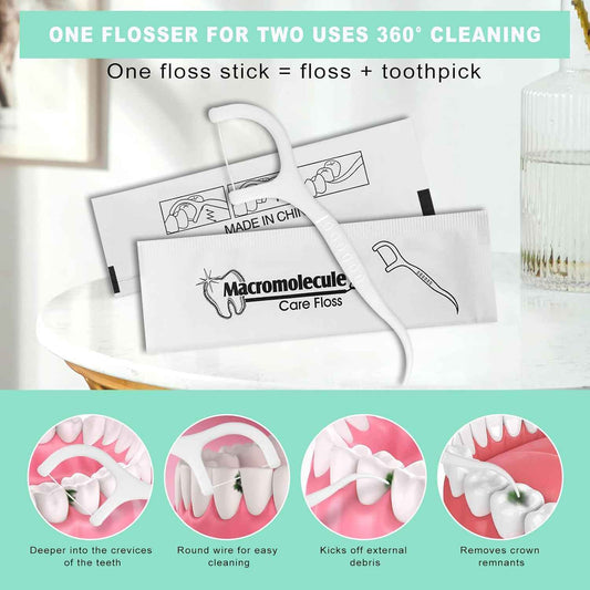 1000 Count Individually Wrapped Dental Floss Picks - Travel, Unflavored, Disposable Tooth Flossers - Single Wrapped Dental Picks